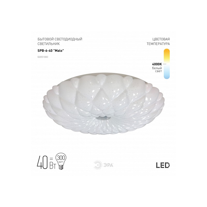 SPB-6-40 Malo Светильник потолочный светодиодный ЭРА Классик без ДУ SPB-6-40 Malo 40Вт 4000К 2700Лм, 5056396271390