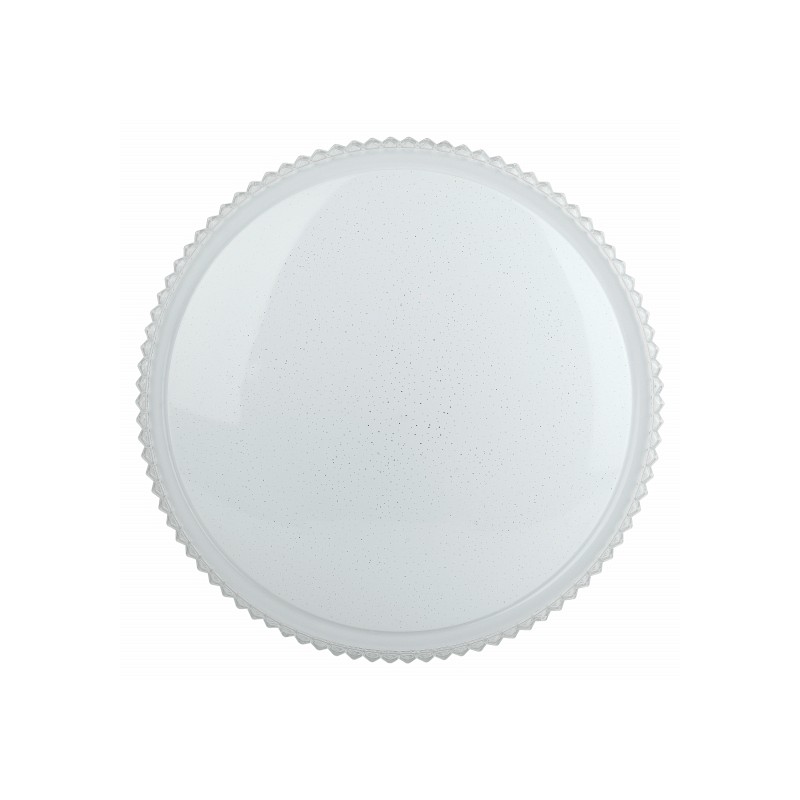 <p>Светильник светодиодный потолочный ЭРА SPB-6-70-RC серии Mirand воплотил в себе сочетание современных технологий освещения и классического дизайна. Рассеиватель светильника выполнен из прочного пластика с особым узором, напоминающим звездное небо. Его обрамляет массивное кольцо "под хрусталь", что создает эффектное свечение на потолке. Такой светильник станет изысканным украшением интерьера, привнесет в него неповторимый колорит. Конструкция светильника состоит из стального основания со светодиодной платой. Диаметр светодиодной лампы составляет 49 см. Цветовая температура регулируется в зависимости от необходимости в пределах от 3000 К до 6000 К, в чем помогает пульт дистанционного управления, яркость свечения также регулируется. Мощность лампы составляет 70 Вт, продолжительность службы 30000 часов.</p>