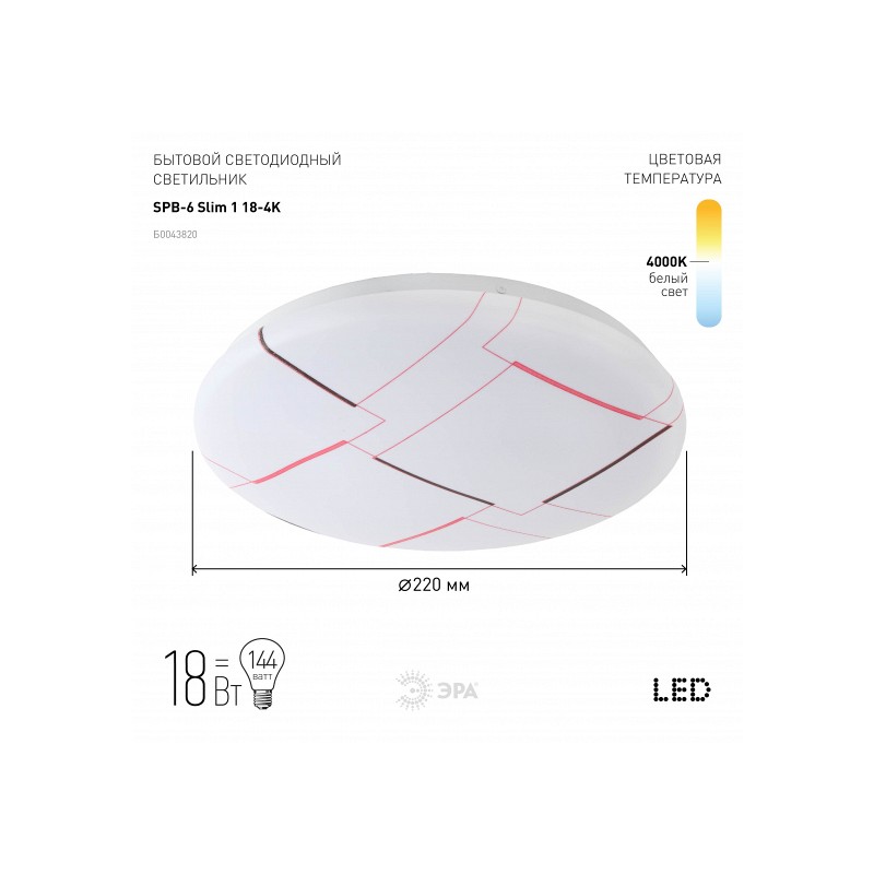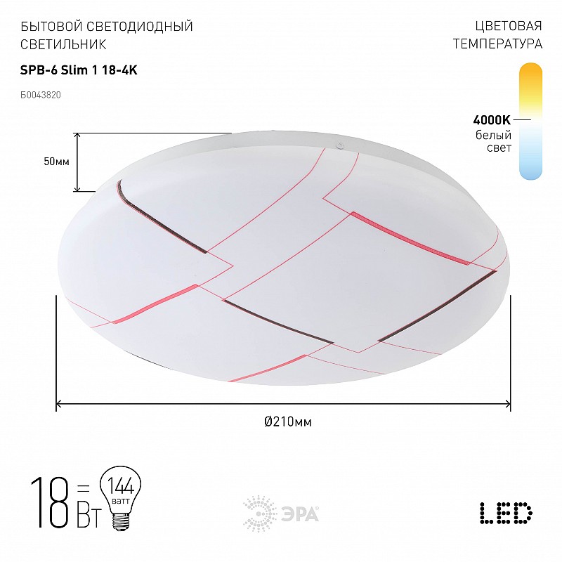 SPB-6 Slim 1 18-4K Светильник потолочный светодиодный ЭРА Slim без ДУ SPB-6 Slim 1 18-4K 18Вт 4000K, 5056306056345