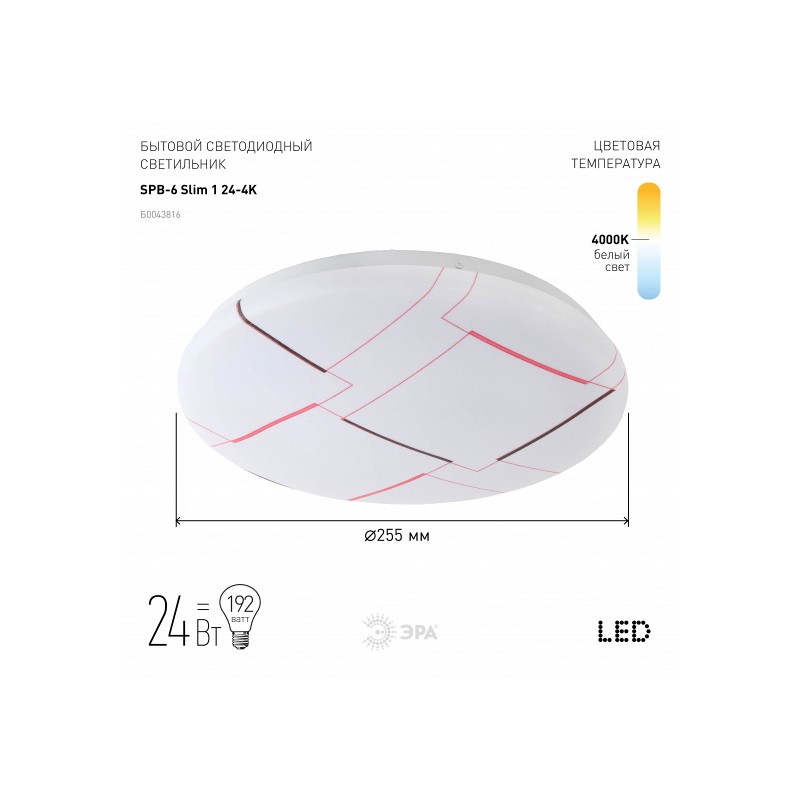 SPB-6 Slim 1 24-4K Светильник потолочный светодиодный ЭРА Slim без ДУ SPB-6 Slim 1 24-4K 24Вт 4000K, 5056306056260