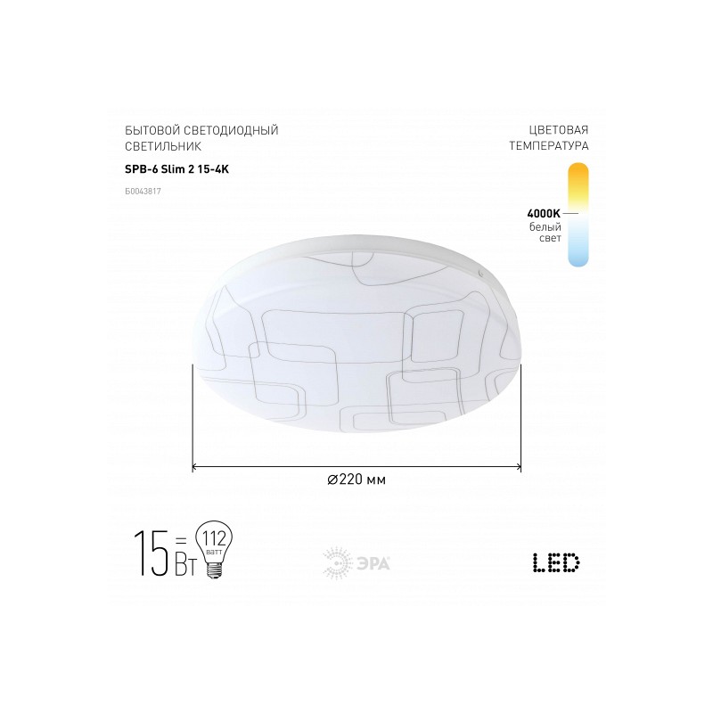 SPB-6 Slim 2 15-4K Светильник потолочный светодиодный ЭРА Slim без ДУ SPB-6 Slim 2 15-4K 15Вт 4000K