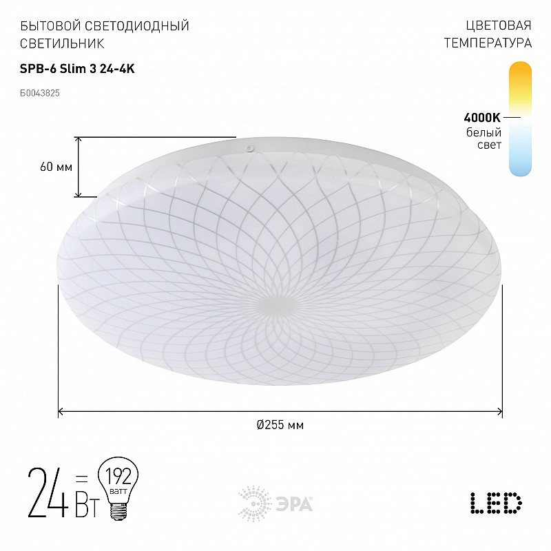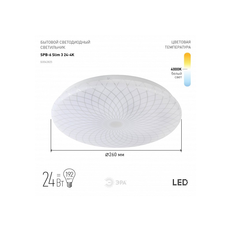 SPB-6 Slim 3 24-4K Светильник потолочный светодиодный ЭРА Slim без ДУ SPB-6 Slim 3 24-4K 24Вт 4000K