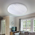Рельефный дизайн рассеивателя, напоминающий морские волны, идеально сочетается с круглым плоским корпусом. За счет этого электросветильник освежит интерьер гостиной, спальни или прихожей.<br />