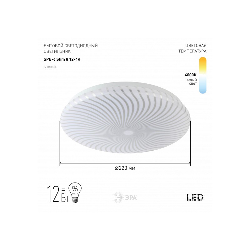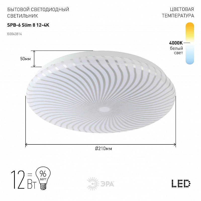 SPB-6 Slim 8 12-4K Светильник потолочный светодиодный ЭРА Slim без ДУ SPB-6 Slim 8 12-4K 12Вт 4000K 800Лм, 5056306056222