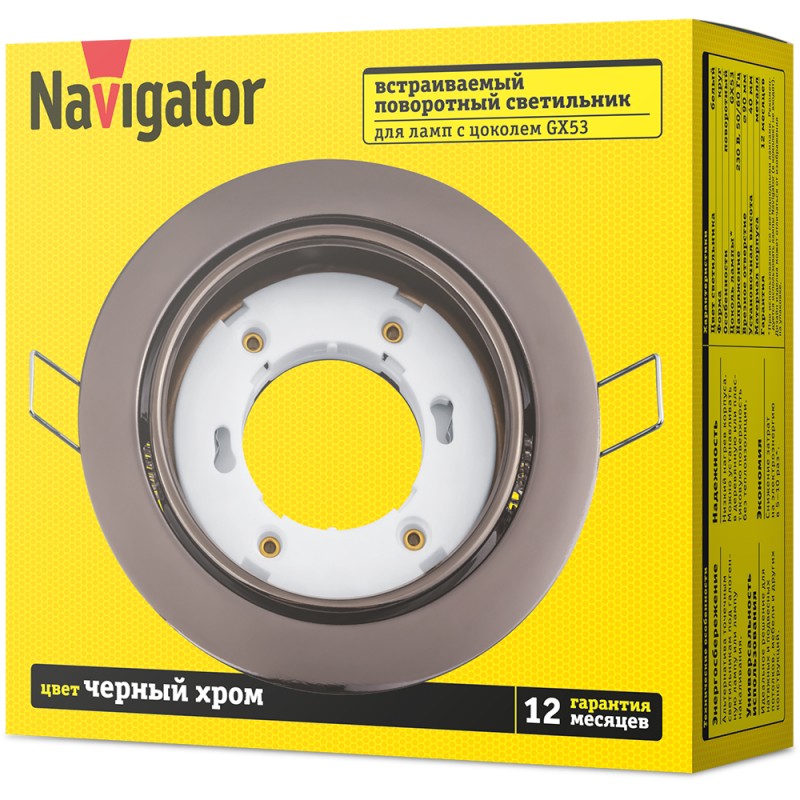 Светильник Navigator 93 034 NGX-R5-005-GX53 (Поворотный черный хром), 4650230930347
