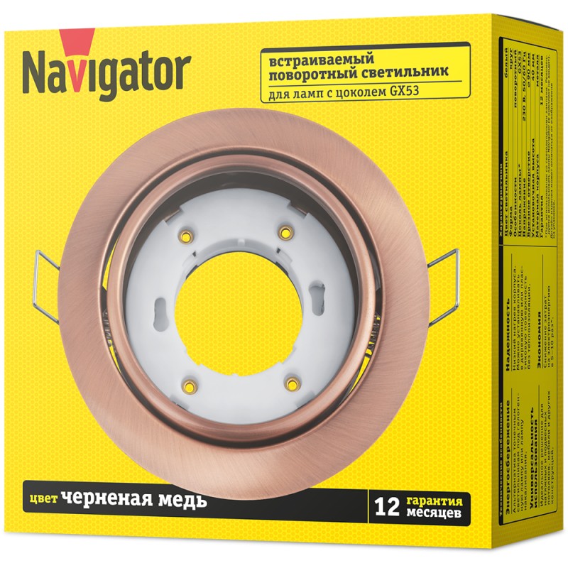 Светильник Navigator 93 035 NGX-R5-006-GX53 (Поворотный черненая медь), 4650230930354