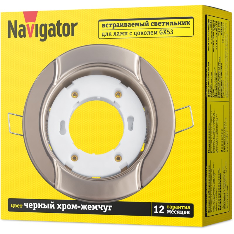 Светильник Navigator 93 057 NGX-R8-007-GX53 (Волна черный хром-жемчуг), 4650230930576