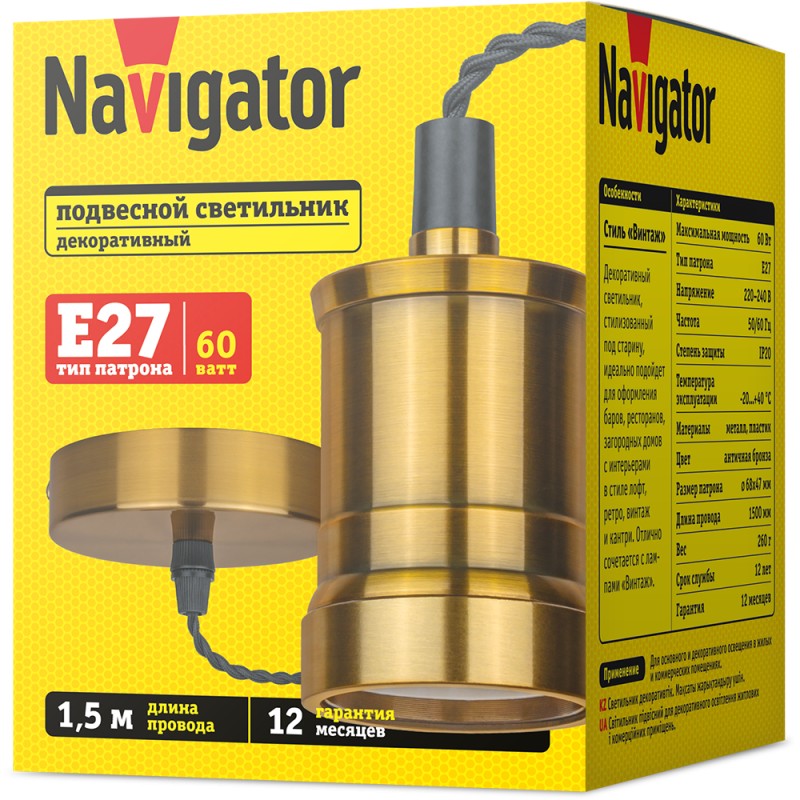 Светильник Navigator 93 161 NIL-SF01-008-E27 античная бронза, 4650230931610