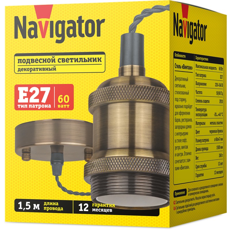 Светильник Navigator 93 162 NIL-SF01-009-E27 черненая бронза, 4650230931627