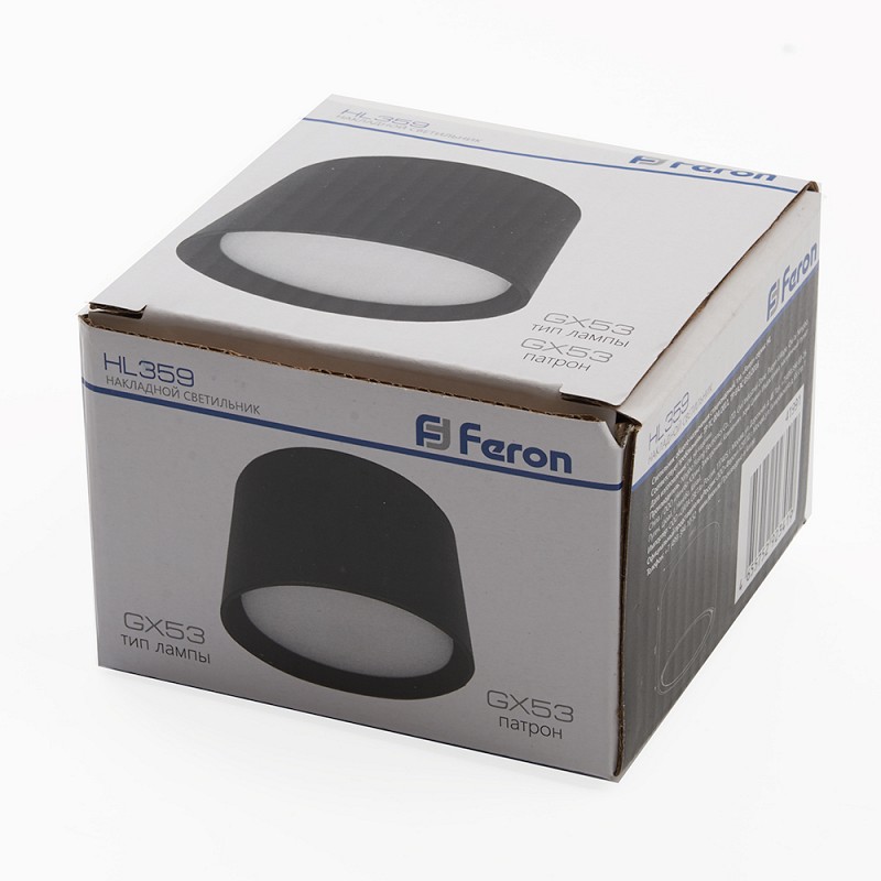 Светильник накладной под лампу, спот (ИПО) FERON HL359, GX53 12W, 230V, IP20, цвет черный, корпус алюминий, 85*85*55