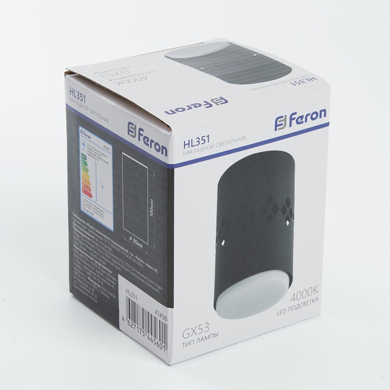 Светильник накладной под лампу, (ИВО) FERON HL351, GX53 12W, (4000К), 230V, IP20, цвет черный, корпус металл, пластик, 80*80*100