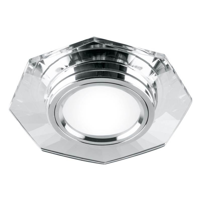 Светильник потолочный встраиваемый (ИВО) FERON DL8120-2/8120-2, под лампу MR16 G5.3, прозрачный хром, 8-ми гранник, 95*95*23 мм, монтажный диаметр 60мм, корпус стекло, неповоротный