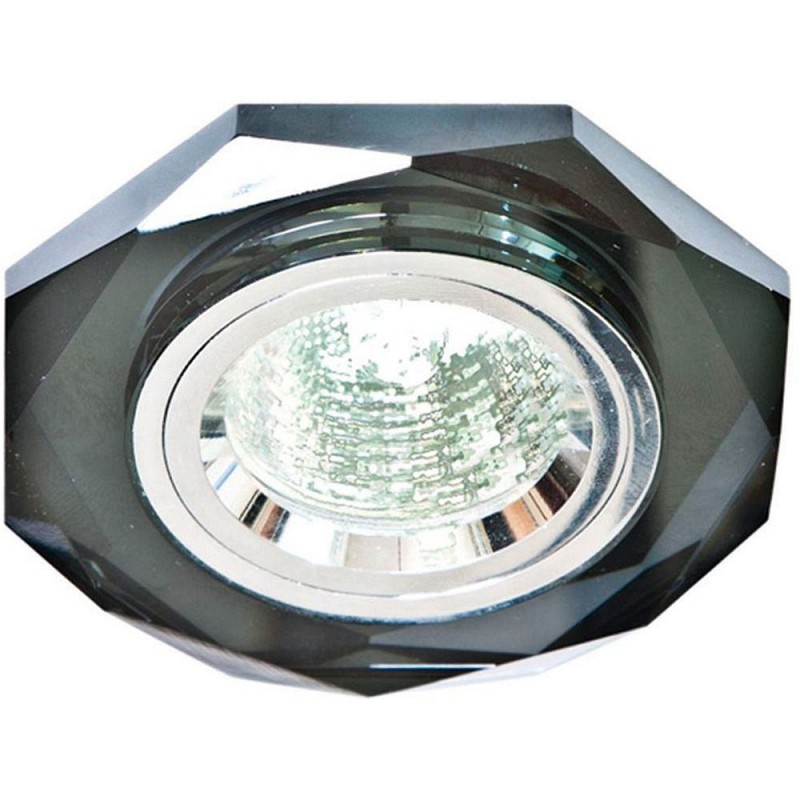 Светильник потолочный встраиваемый (ИВО) FERON DL8020-2/8020-2, под лампу MR16 G5.3, серый хром, 8-ми гранник, 90*90*25 мм, монтажный диаметр 60мм, корпус стекло, неповоротный