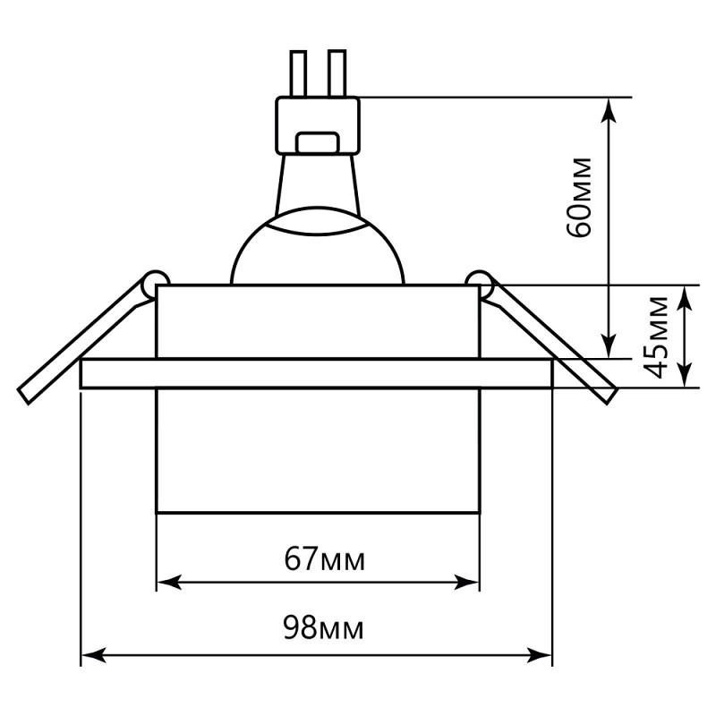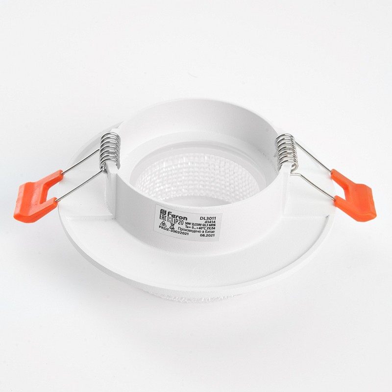 Светильник потолочный встраиваемый (ИВО) FERON DL3011, под лампу MR16 G5.3, белый, круг, 98*98*45 мм, монтажный диаметр 67мм, корпус металл+акрил, неповоротный