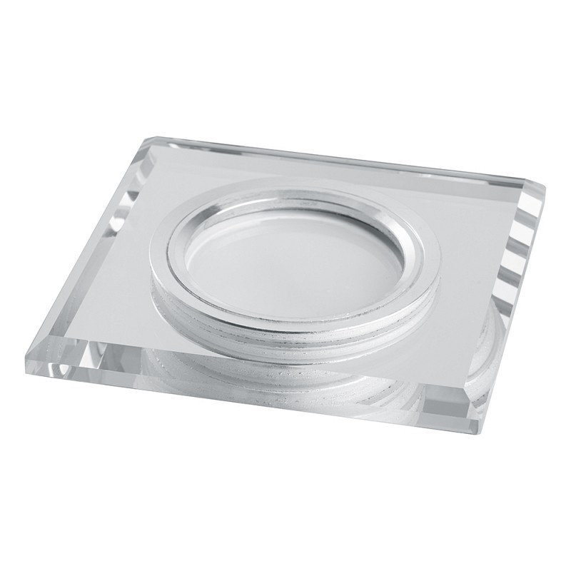 Светильник потолочный встраиваемый (ИВО) FERON CD8150, под лампу с LED подсветкой 15LED*2835 SMD 4000K, MR16 G5.3, прозрачный хром, квадрат, 90*90*23 мм, монтажный диаметр 60мм, корпус стекло, неповоротный