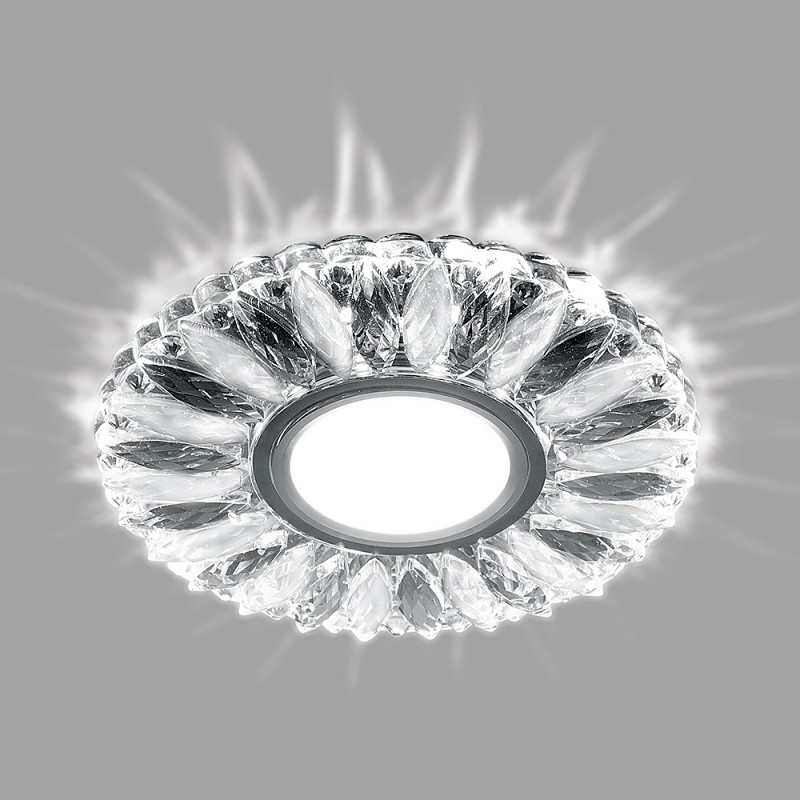 Светильник потолочный встраиваемый со светодиодной подсветкой 15LED*2835 SMD 4000K, MR16 50W G5.3, прозрачный-матовый, хром, CD917 с драйвером в комплекте, 4627134110588