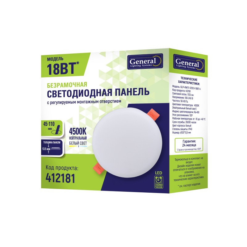 Светильник с креплением под любое отверстие 45-110 мм GLP-RW17-120CH-18BT-4, 4660125954051