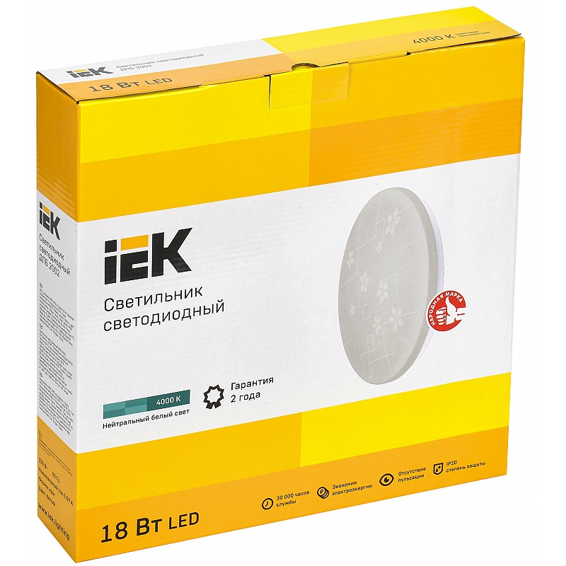 Светильник светодиодный ДПБ 2002 18Вт IP20 4000K круг белый IEK, 4606056784886