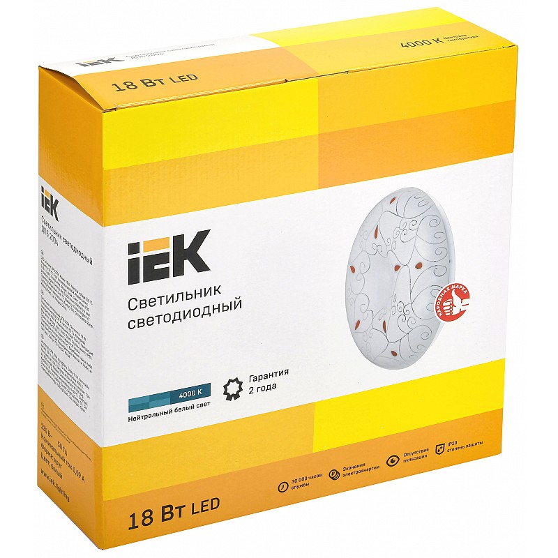 Светильник светодиодный ДПБ 2004 18Вт IP20 4000К круг белый IEK, 4610084093810