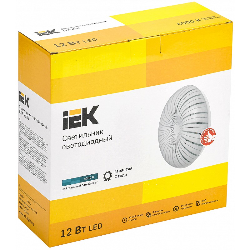 Светильник светодиодный ДПБ 2006 12Вт IP20 4000К круг белый IEK, 4610084093896