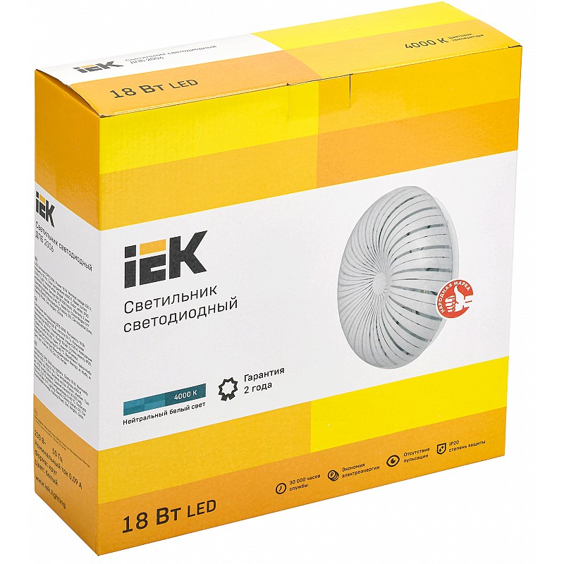 Светильник светодиодный ДПБ 2006 18Вт IP20 4000К круг белый IEK, 4610084000078