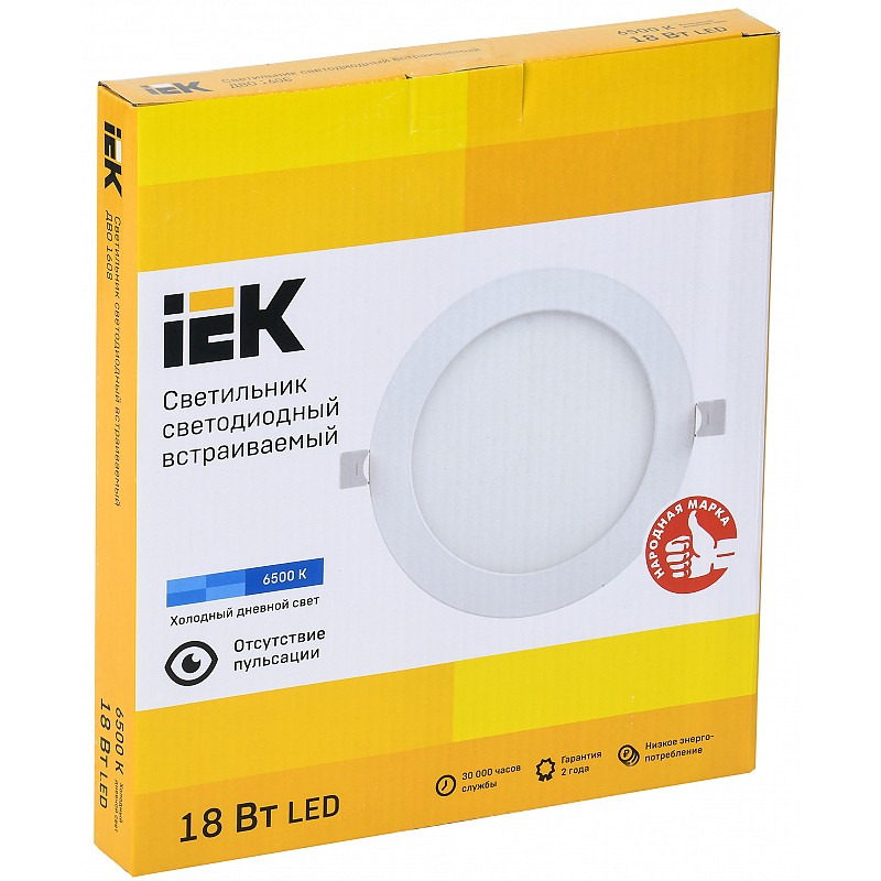 Светильник светодиодный ДВО 1608 круг 18Вт 6500K IP20 белый IEK, 4606056517552