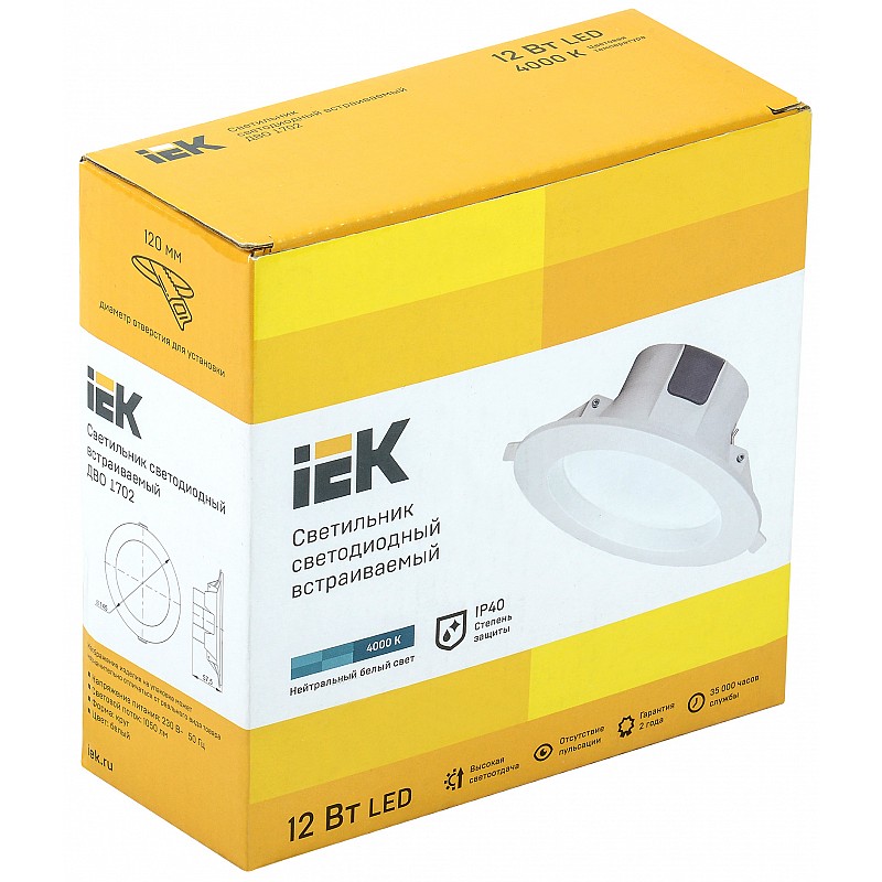 Светильник светодиодный ДВО 1702 круг 12Вт 4000K IP40 белый IEK
