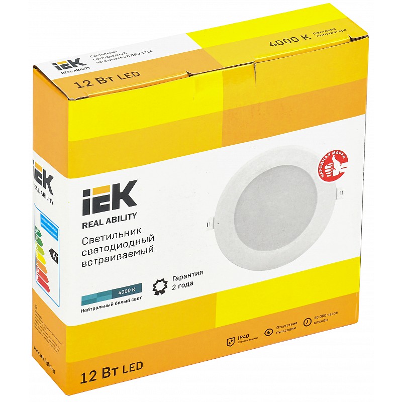 Светильник светодиодный ДВО 1714 белый круг 12Вт 4000К IP40 IEK, 4610084186383