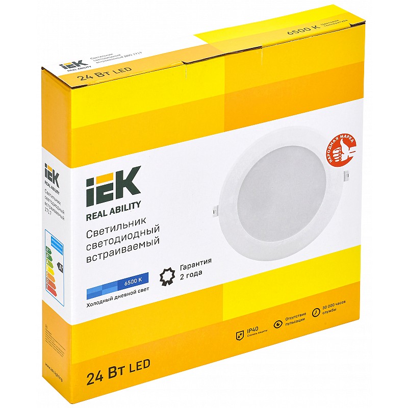Светильник светодиодный ДВО 1717 белый круг 24Вт 6500К IP40 IEK, 4610084186529