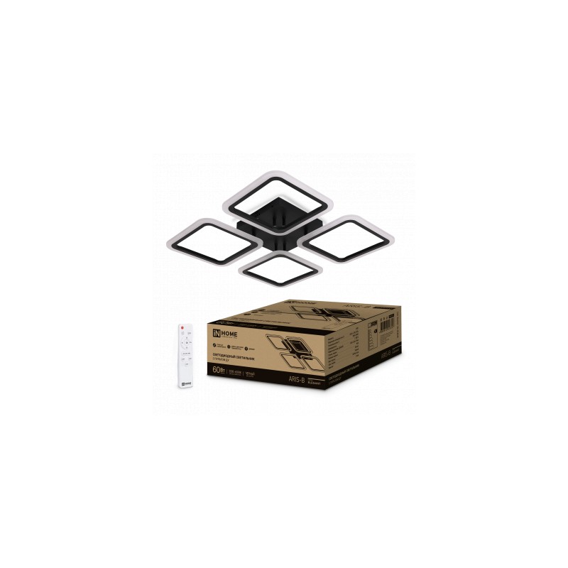 Светильник светодиодный ELEGANT ARIS-B 60Вт 230В 3000-6500K 4700Лм 450х450х75мм c пультом ДУ черный IN HOME, 4690612043357