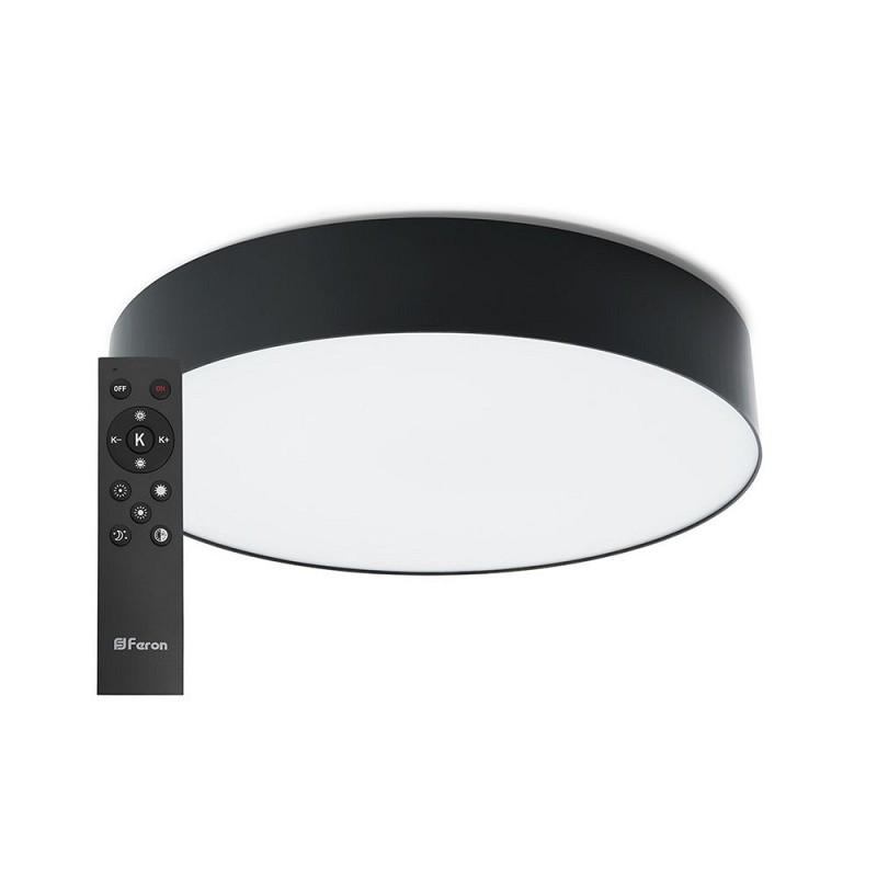 Светильник накладной светодиодный, потолочный управляемый (ДПО) FERON AL6200, 60W, 3000К-6500K (теплый-белый-дневной), 230V, 3600Lm, IP20, угол рассеивания 120°, цвет черный, корпус штампованная сталь, рассеиватель матовый пластик, 400*400*70