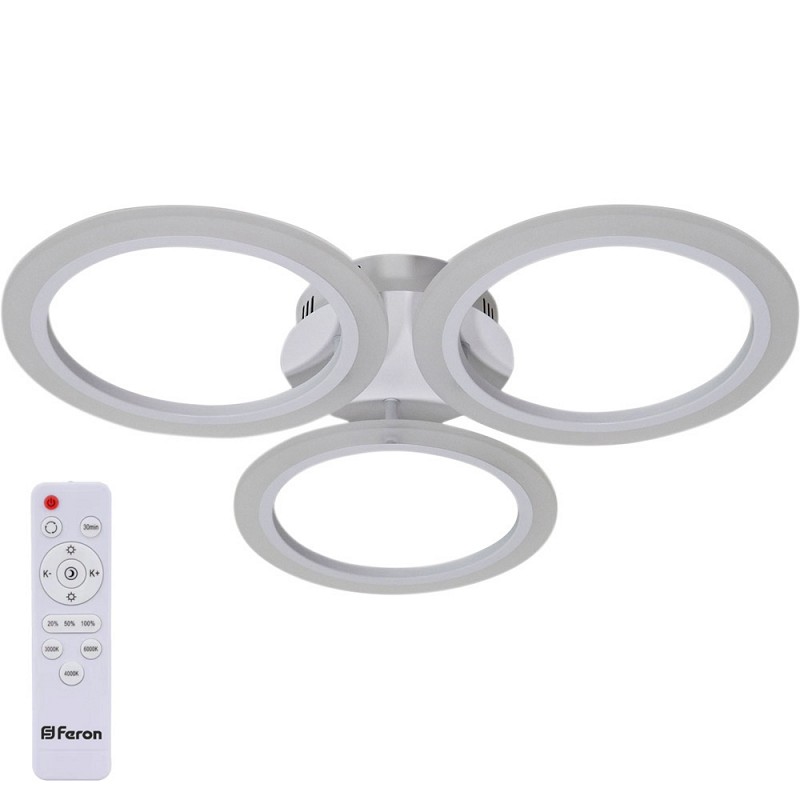 Светильник накладной светодиодный, потолочный управляемый (ДПО) FERON AL5930, 72W, 3000К-6500K (теплый-белый-дневной), 230V, 4200Lm, IP20, угол рассеивания 120°, цвет белый, корпус штампованная сталь, рассеиватель акрил и металл, 580*580*80