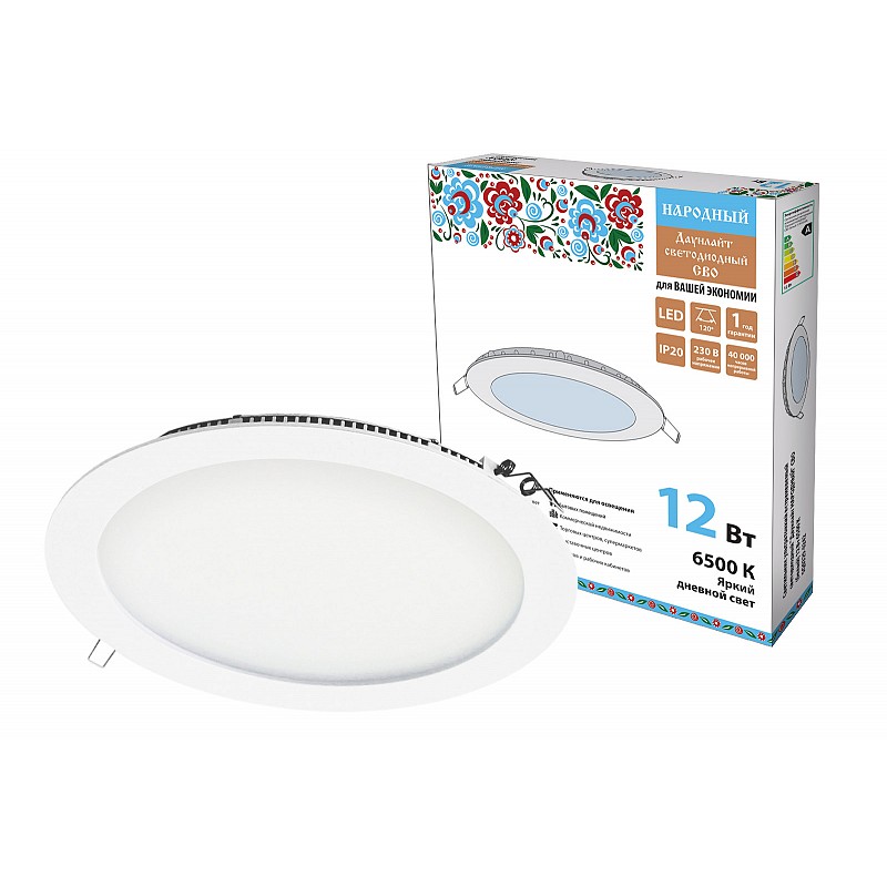 Светильник ультратонкий встраиваемый светодиодный Даунлайт НАРОДНЫЙ СВО (белый) 12 Вт 6500К, 4690259335389