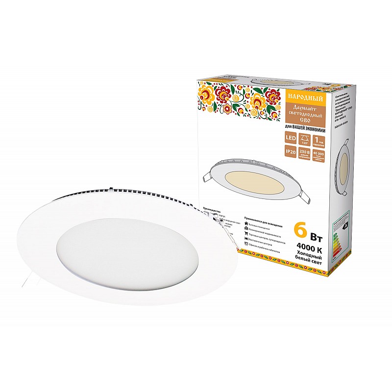 Светильник ультратонкий встраиваемый светодиодный Даунлайт НАРОДНЫЙ СВО (белый) 6 Вт 4000К, 4690259282911