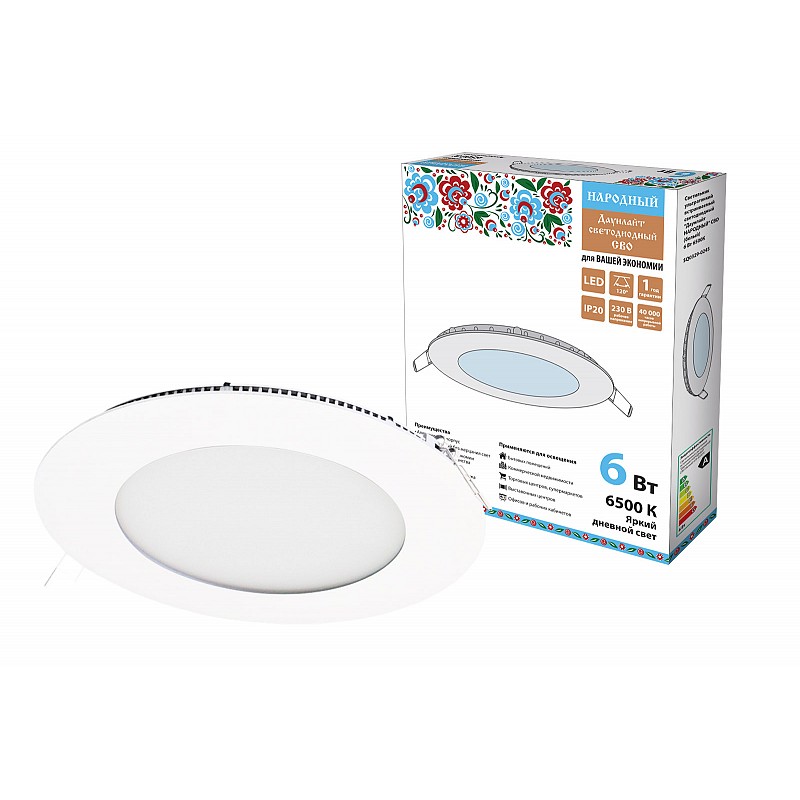Светильник ультратонкий встраиваемый светодиодный Даунлайт НАРОДНЫЙ СВО (белый) 6 Вт 6500К, 4690259336256