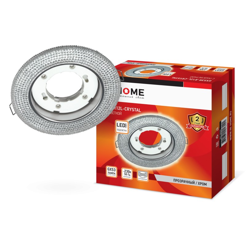 Светильник встраиваемый GX53R-crystal R12L с подсветкой 4К под лампу GX53 Прозрачный/Хром IN HOME, 4690612016221
