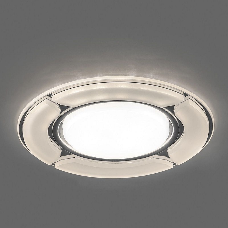 Светильник потолочный встраиваемый (ФВО) FERON CD4039, под лампу с LED подсветкой 20LED*2835 SMD 4000K, GX53 GX53, белый матовый хром, круг, 135*135*26 мм, монтажн.отв. 80 монтажный диаметр 80мм, корпус полимер, неповоротный