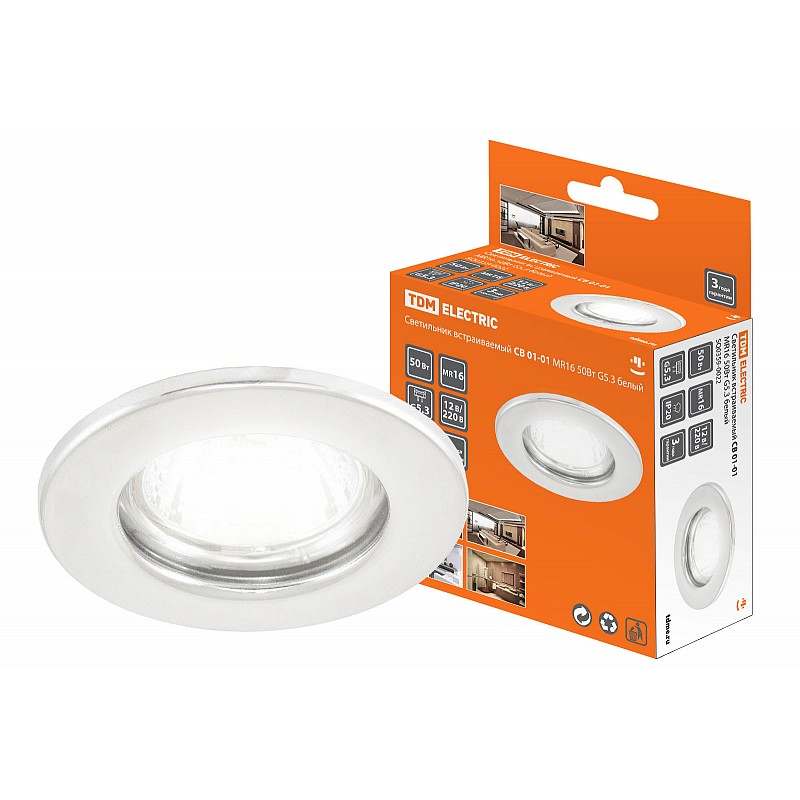 ПрименениеДля общего освещенияДля декоративной подсветкиВечернее приглушённое освещение комнатОсвещение рабочего места.Подсветка полок, ниш и шкафовОсвещение торговых витринМатериалыЛитая стальШтампованная стальДекоративное стекло.Пластиковый композитПреимуществаОптимальный ассортиментный рядНадёжное гальваническое покрытие корпусаПрочные пружины для фиксации светильников в монтажном отверстииСконцентрированный, направленный светВстраиваемые светильники под лампу MR16 можно использовать как с лампой 12 В, так и с лампой 220 ВВозможно использовать с лампами LED GX53, GX70, GU 5.3 и КЛЛ GX53 TDM ELECTRICКомплектацияСветильник.Руководство по эксплуатации. Паспорт.Патрон G5.3/GX53/GX70/E14/E27 (в зависимости от модели светильника)