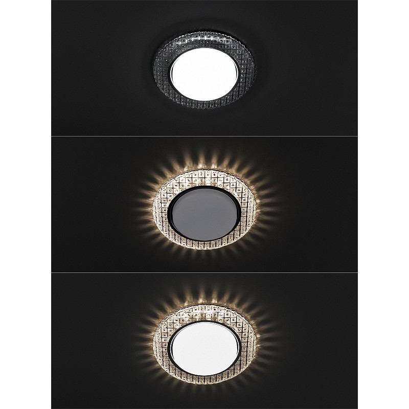 ПреимуществаСветильник имеет 3 режима работы:- лампа;- LED подсветка: светодиодная подсветка по контору светильника;- лампа и LED подсветка.Драйвер в комплектеПростой и быстрый монтажВозможность создания световых эффектов на потолке.Гарантия - 2 года.ПрименениеПодвесные потолки, ниши потолков.НазначениеСветильники встраиваемые серии СВ (точечные) GX53 с LED подсветкой предназначены для общего, акцентного освещения и декоративной подсветки.КомплектацияСветильник.ДрайверРуководство по эксплуатации. Паспорт.Индивидуальная упаковка.