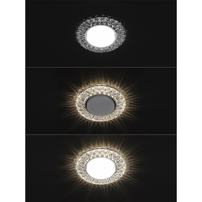 ПреимуществаСветильник имеет 3 режима работы:- лампа;- LED подсветка: светодиодная подсветка по контору светильника;- лампа и LED подсветка.Драйвер в комплектеПростой и быстрый монтажВозможность создания световых эффектов на потолке.Гарантия - 2 года.ПрименениеПодвесные потолки, ниши потолков.НазначениеСветильники встраиваемые серии СВ (точечные) GX53 с LED подсветкой предназначены для общего, акцентного освещения и декоративной подсветки.КомплектацияСветильник.ДрайверРуководство по эксплуатации. Паспорт.Индивидуальная упаковка.