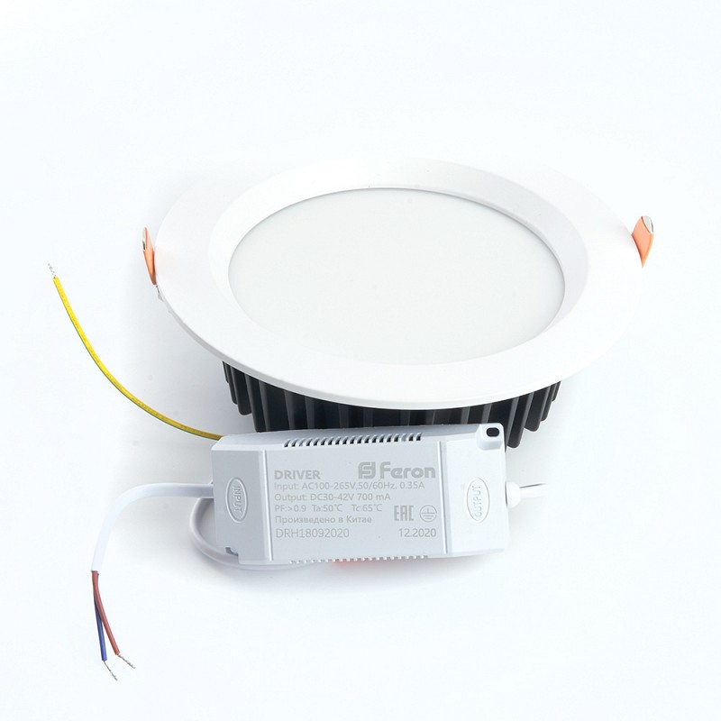 Светильник встраиваемый светодиодный 30W, 2700Lm, 4000K, 90 градусов, белый, AL253 с драйвером в комплекте, 4627153181729