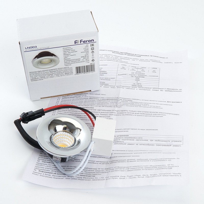 Светильник встраиваемый светодиодный 3W, 210 Lm, 4000К, хром, LN003 с драйвером в комплекте, 4627110522121