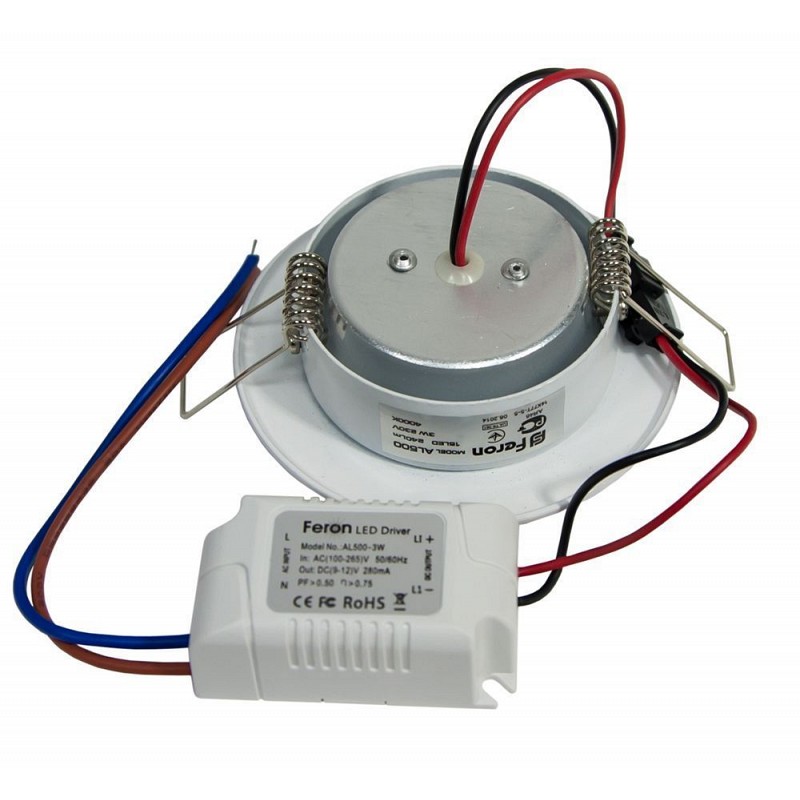 Светильник встраиваемый светодиодный 3W, 4000К, 180Lm, белый, AL500 с драйвером в комплекте