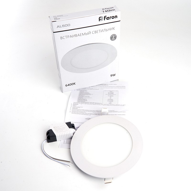 Светильник встраиваемый светодиодный AL500 9W,6400K, 740Lm, белый с драйвером в комплекте