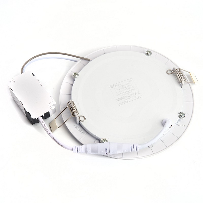 Светильник встраиваемый светодиодный, ультратонкий (ДВО) FERON AL500, 9W 6400К (дневной), 175-265V, 740Lm, IP40, угол рассеивания 120°, цвет белый, корпус алюминий, рассеиватель матовый акриловый полимер, 145*145*18 мм, монтажн.отв. 135*135 мм.
