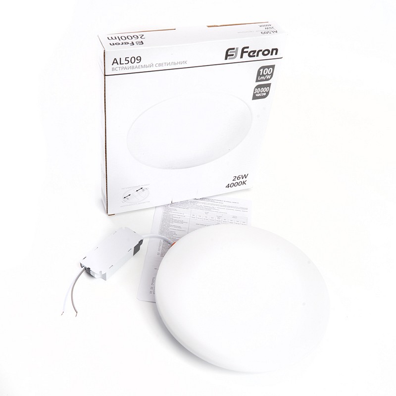 Светильник встраиваемый светодиодный с регулируемым монтажным диаметром (до 210мм) 26W, 4000K ,2600Lm, белый, AL509 с драйвером в комплекте, 4627175440279