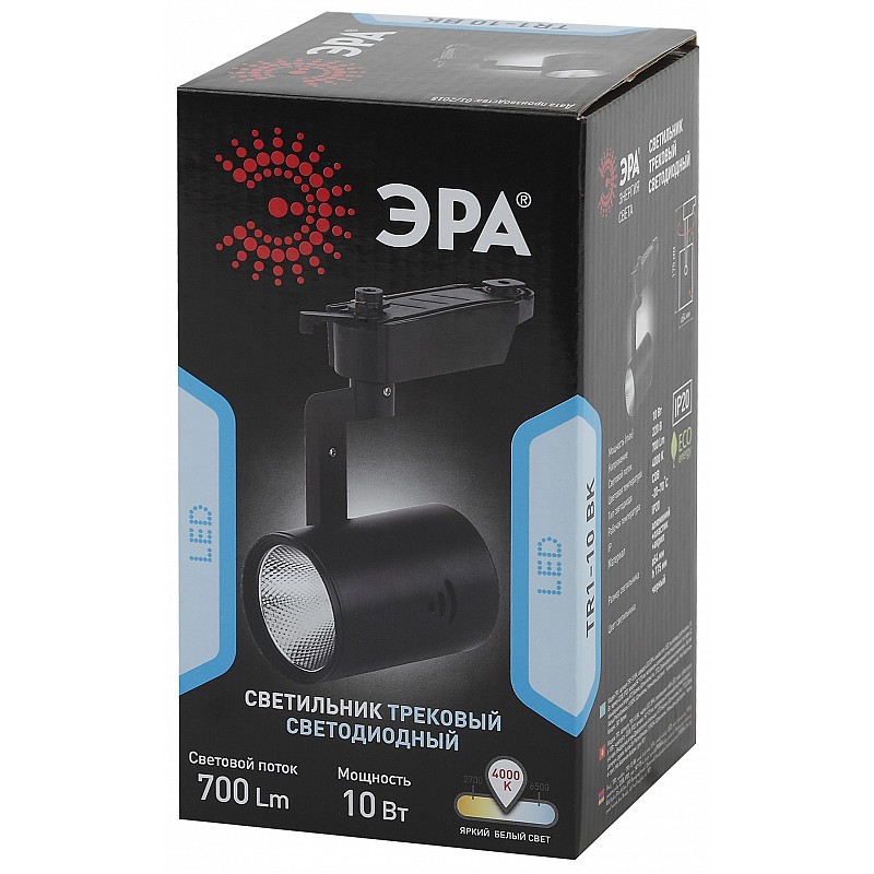 TR1 - 10 BK Трековый светильник однофазный ЭРА TR1 - 10 BK светодиодный COB 10Вт 4000К 700Лм черный, 5055945586909