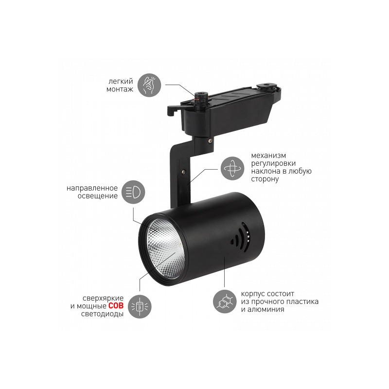 TR1 - 10 BK Трековый светильник однофазный ЭРА TR1 - 10 BK светодиодный COB 10Вт 4000К 700Лм черный