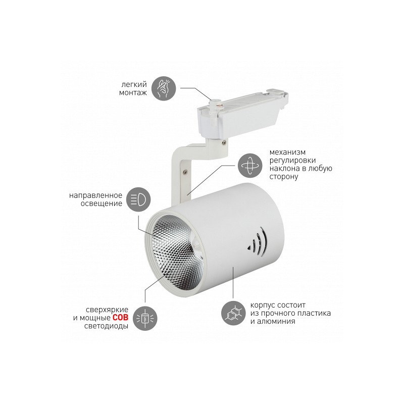 TR1 - 30 WH Трековый светильник однофазный ЭРА TR1 - 30 WH светодиодный COB 30Вт 4000К 2100Лм белый