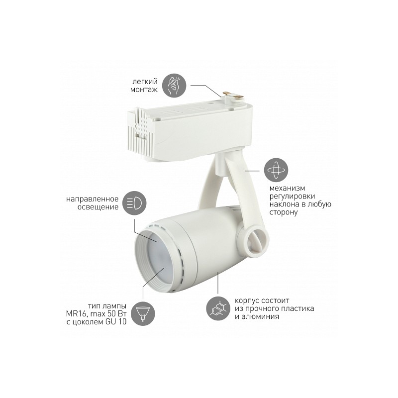 <p>Трековый светильник TR12-GU10 WH под лампу выполнен в элегантном белом цвете. Он создаст необходимые акценты в пространстве помещения, выделит отдельные предметы, создаст яркую подсветку. Подобные светильники снабжены поворотным механизмом, который позволяет регулировать угол наклона, изменяя общий вид всего помещения. Источником света является лампа с цоколем GU10, наличие которой делает светильник максимально универсальным и дает возможность выбрать необходимую мощность, цветовую температуру и угол рассеивания. Лампа прослужит несколько лет, не требуя дополнительной замены источника света. Светильник классического белого цвета отлично впишется в любой дизайн, создаст необходимые акценты. Стилистическое разнообразие моделей трековых светильников Эра позволит подобрать наиболее подходящий вариант к конкретному помещению.</p>